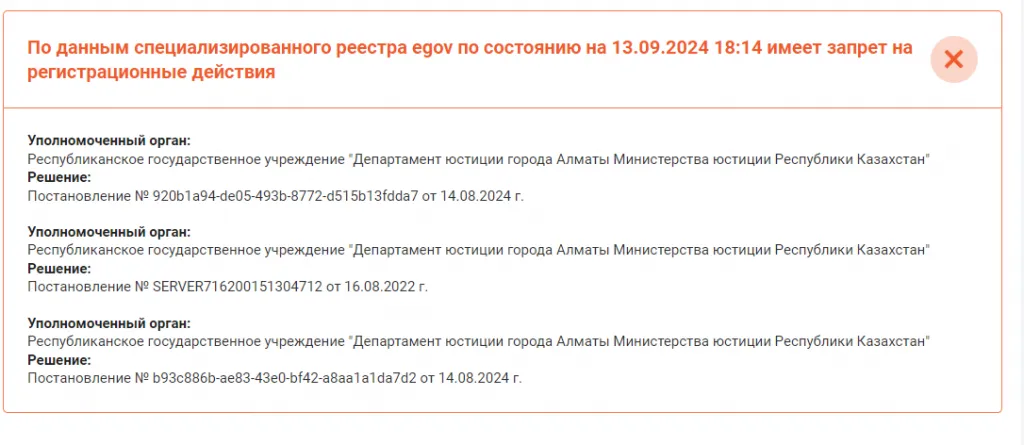 Пока RAMS снижает эмиссии и проявляет углеродную дружелюбность к экосистемам на своём официальном сайте, на деле у них не всё так прекрасно. Как выяснил отдел расследований CMN.KZ, с 16 августа 2022 года департамент юстиции Алматы постановил запретить любые регистрационные действия ТОО "РАМС-КАЗАХСТАН". За два года они получили три таких постановления, два из них датируются августом 2024 года.