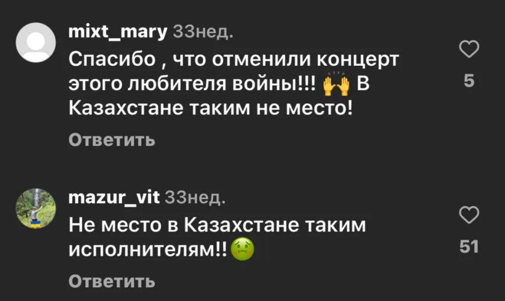 С начала войны казахстанская общественность отменяла концерты многих российских артистов, поддержавших вторжение России в Украину.