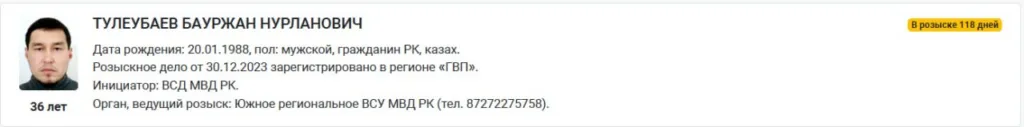 Сотрудники МВД РК задержали 36-летнего Бауржана Тулеубаева, которого более трех месяцев назад объявили в международный розыск, передает собственный корреспондент CMN.KZ