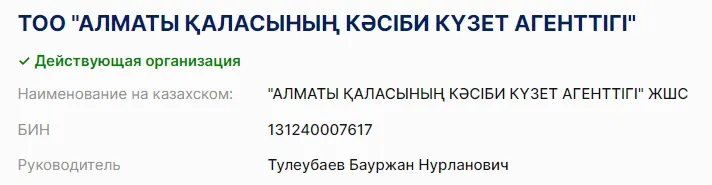 Отметим, что он, предположительно, руководитель ТОО "Алматы қаласының кәсіби күзет агенттігі" (профессиональное охранное агентство Алматы - прим. ред.)