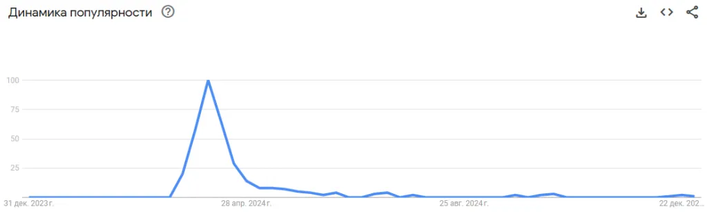 Запросы о паводках также оказались среди самых популярных тем года. Основной пик интереса пришёлся на весну, когда стихия затопила целые населённые пункты. В 10 регионах было объявлено чрезвычайное положение, а тысячи людей лишились жилья и имущества.