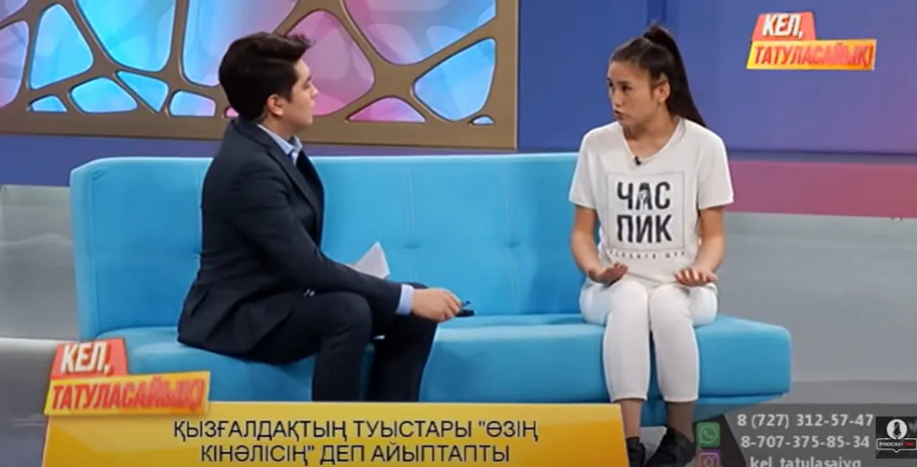 Девушка пришла на шоу «Кел, татуласайық!», чтобы насильников осудили и она смогла получить законные алименты от отца ребёнка. При этом у некоторых представителей съёмочной команды были совершенно другие намерения.