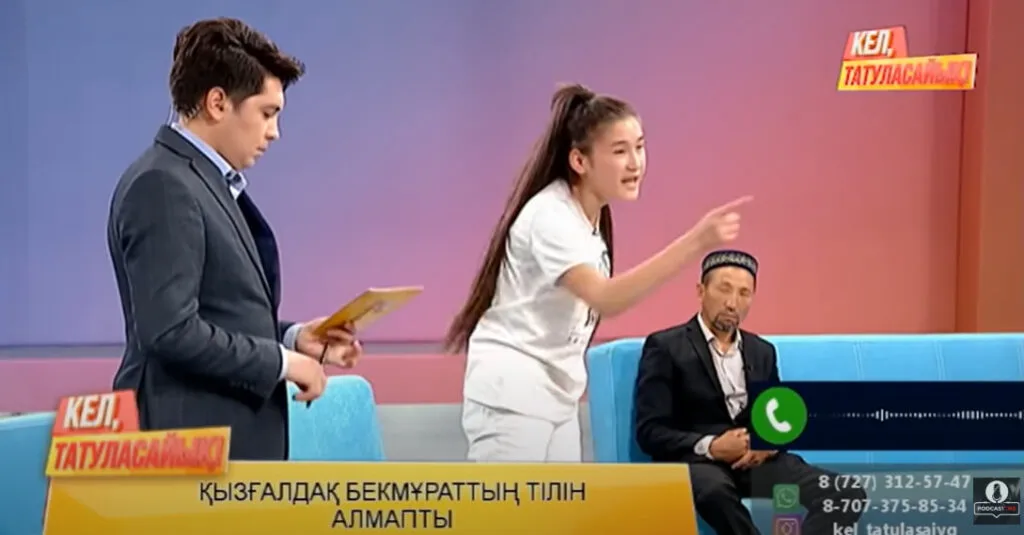 Один из них Еркинбек Есембаев. Мужчина хотел помириться с женой с помощью передачи. Он в прямом эфире обвинял Кызгалдак во вранье, а за кулисами отправлял ей гневные аудиосообщения.