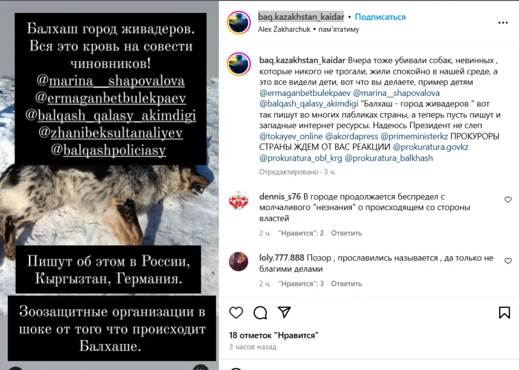 Примечательно, что выступивший уже после появления информации об отстреле с отчётом глава отдела полиции Балхаша Кадрин Айткен никак не прокомментировал ситуацию. В часовом ролике он говорил о многом, но тему отстрела не затронул.