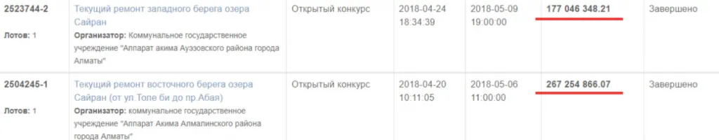 - Содержание восточного берега Сайрана за 24,7 млн тенге;