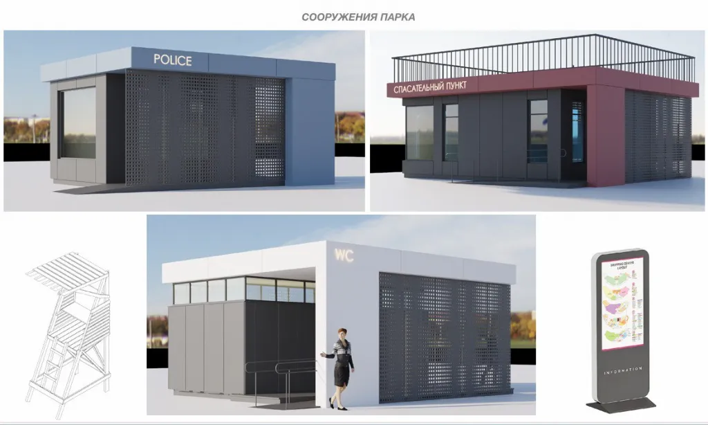 Кроме этого, проект включает в себя пляж, установку фудкорта, теннисного корта, скейтпарка, велопарка и детского городка. Для безопасности отдыхающих обещают установить два полицейских пункта, два спасательных поста и тревожные кнопки по периметру набережной. Также подрядчики установят пять общественных туалетов и огороженную площадку для выгула собак.
