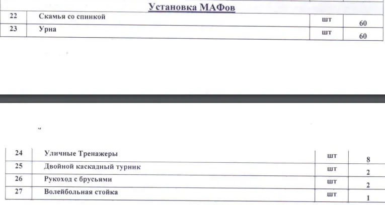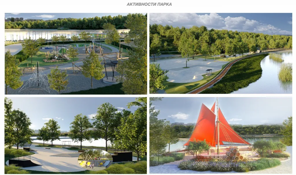 По сравнению с генпланом модернизации водохранилища на 2024 год, список архитектурных форм, установленных при Байбеке выглядит скудно: 60 скамеек, 60 урн, восемь уличных тренажёров, два турника с брусьями и волейбольная стойка.